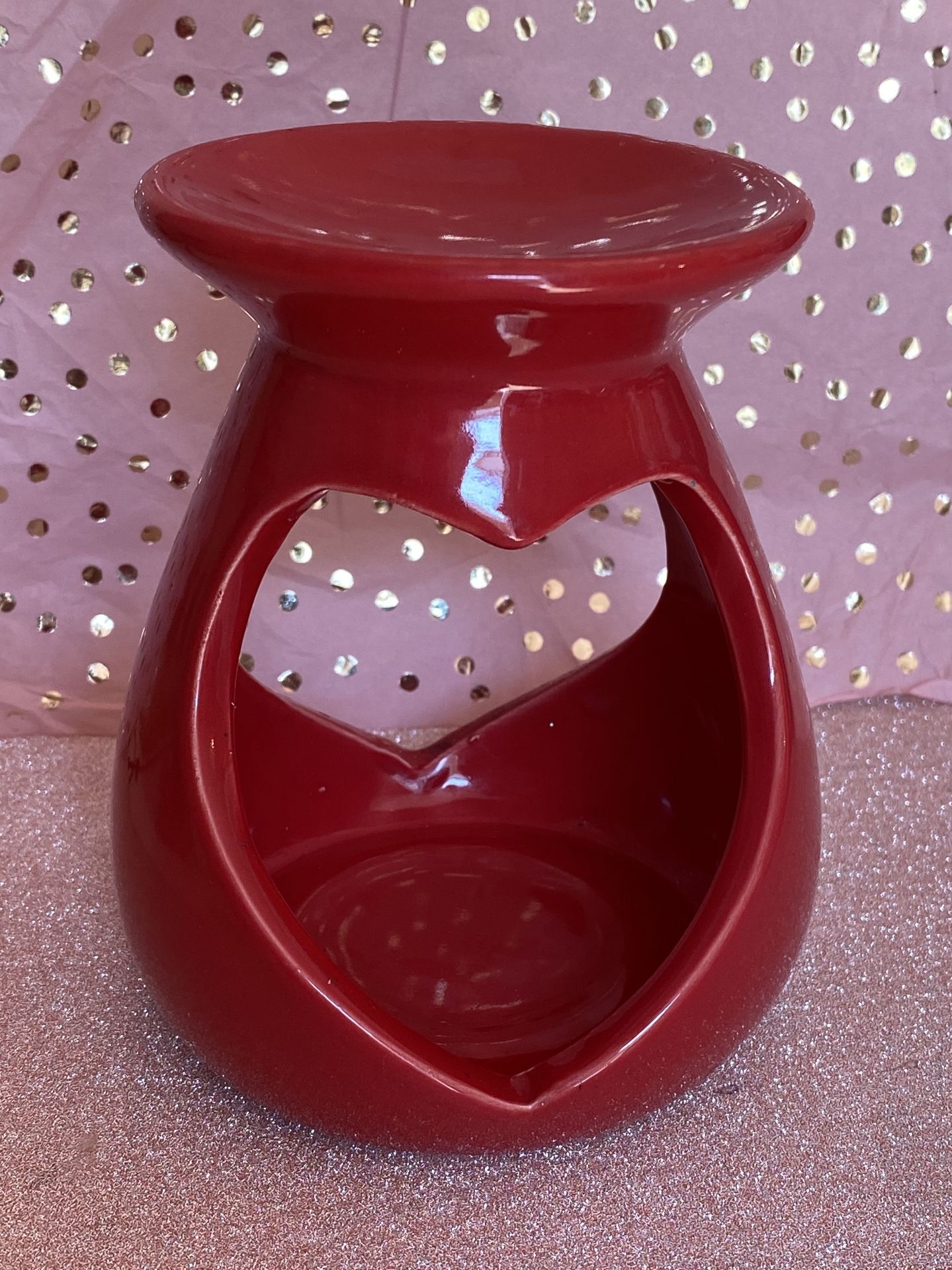 Red love heart shape wax warmer for use with 4 or 8 hour T- lights